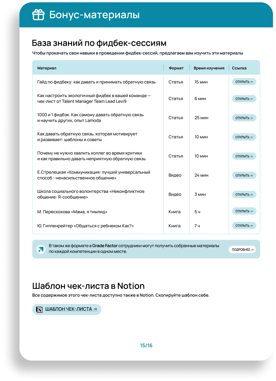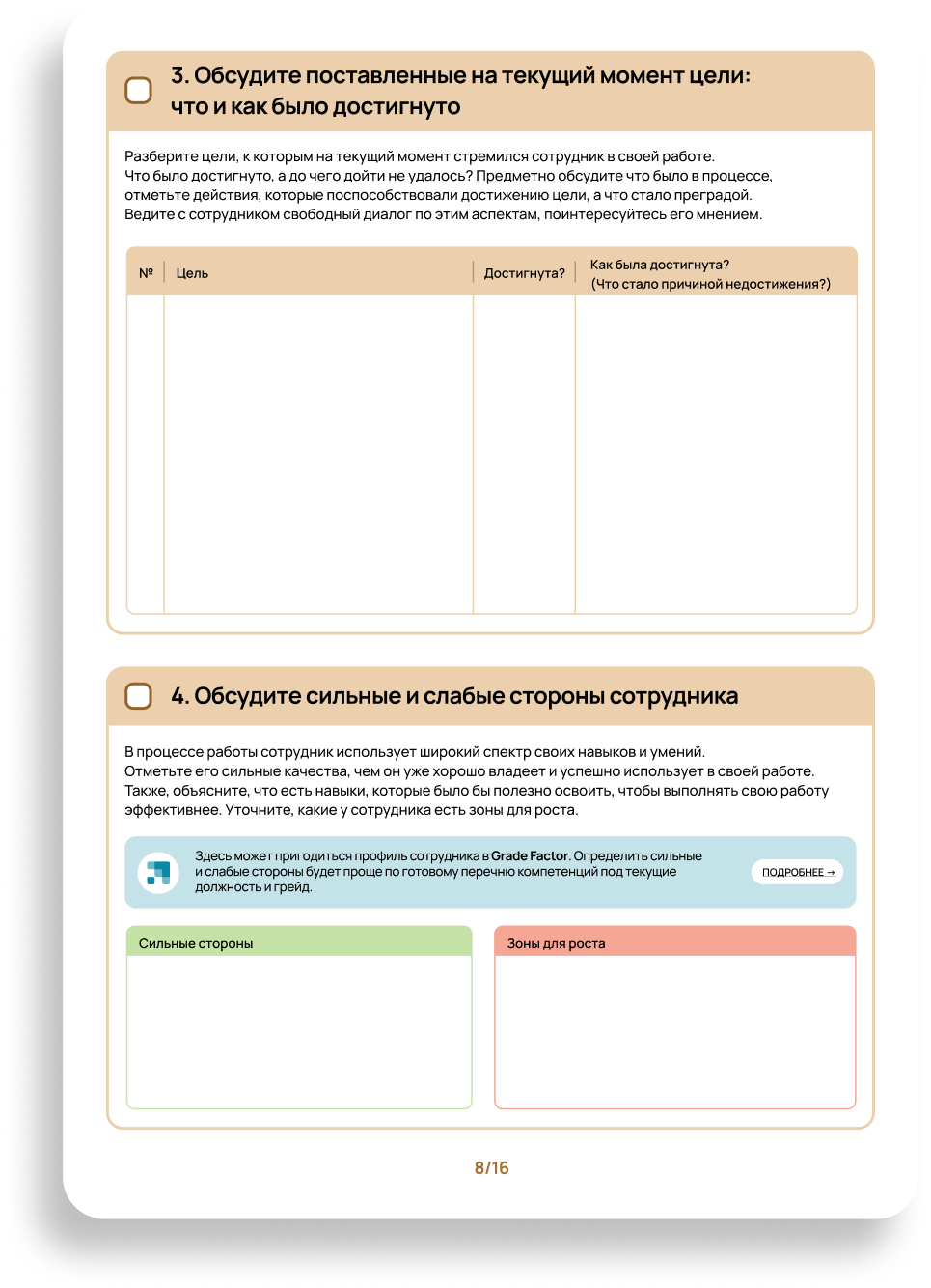 Принимайте решения на основе данных по эффективности работы сотрудника. Минимизируйте ручную работу, оптимизируйте оценку сотрудников. Запустите процесс, назначив оценку 360°, и получайте отчеты, остальное на себя возьмет платформа Grade Factor. При необходимости также проводите калибровку и выгружайте итоговые результаты по компетенциям с графиками.